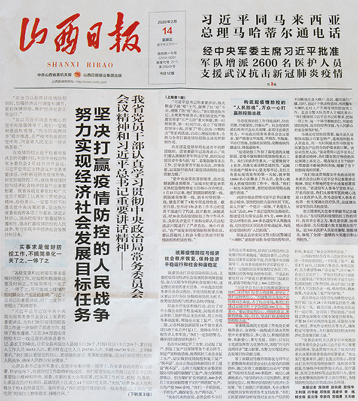 《山西日報》報道西建集團為疫情防控助力捐款100萬,目前已累計捐款達245萬
