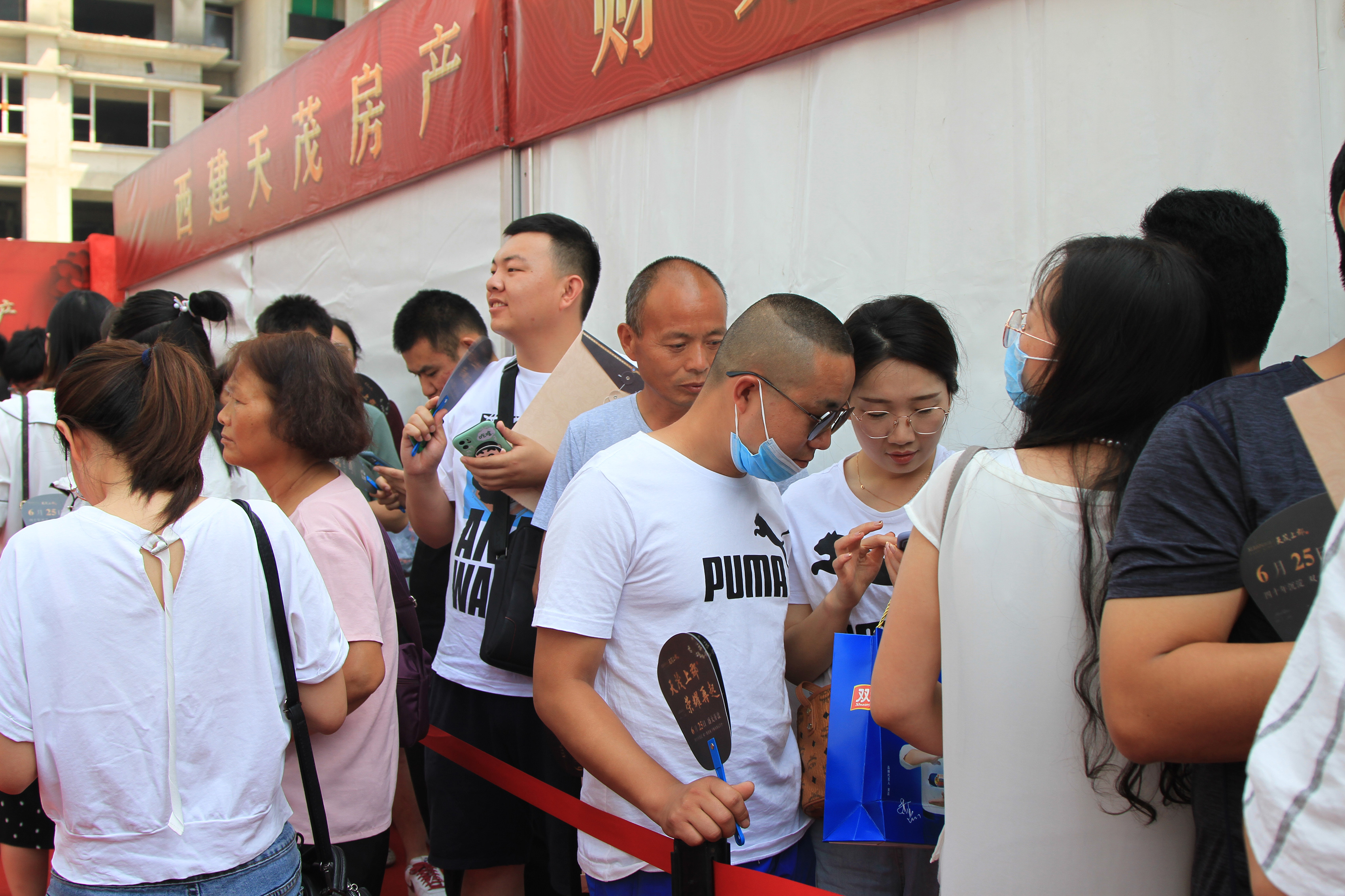 雖然天氣炎熱,但依然抵擋不住大家的熱情,開盤時(shí)間還未到,一支百人服務(wù)大隊(duì)整裝待發(fā),早早守候在天茂上郡中央廣場(chǎng)會(huì)場(chǎng)內(nèi),靜待尊貴的客戶蒞臨。距離開盤還有一個(gè)小時(shí),偌大的會(huì)場(chǎng)早已人聲鼎沸,大家早早趕來(lái)生怕與心儀房源失之交臂,眾多購(gòu)房者翹首以盼,焦急地等候開盤儀式,共同見證西建·天茂上郡開盤的盛況。