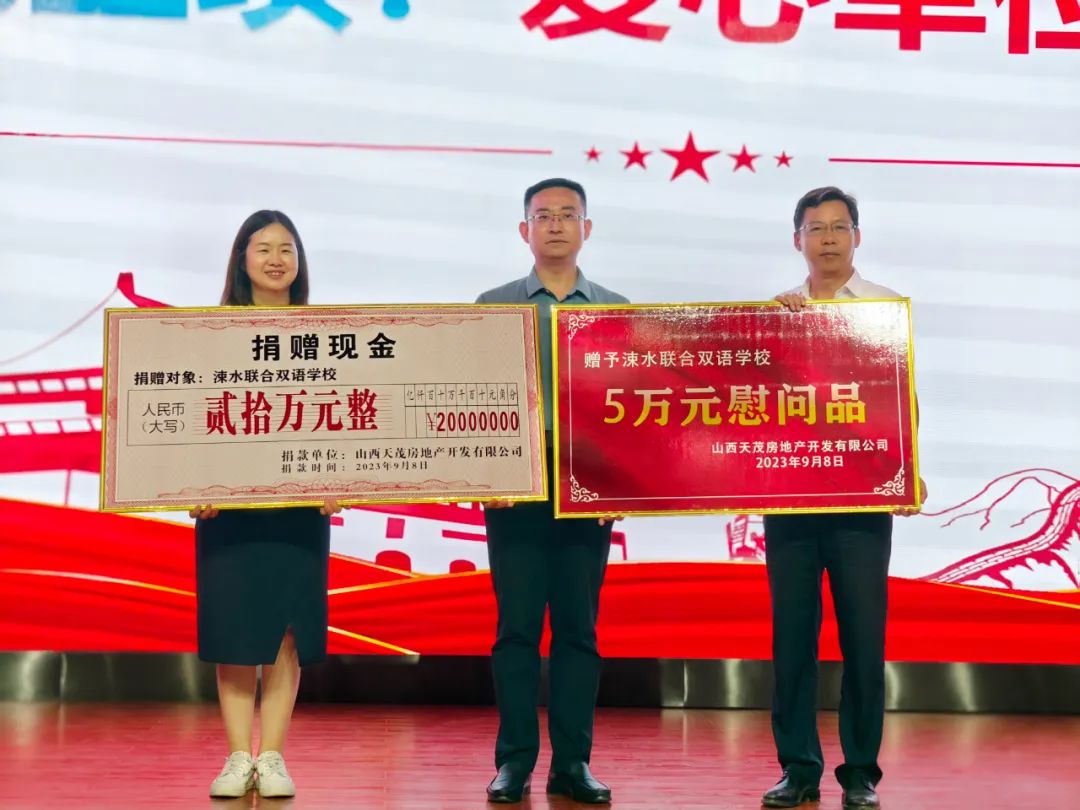 此次活動(dòng),西建天茂房產(chǎn)為涑水學(xué)校捐現(xiàn)金20萬(wàn)元,慰問(wèn)品5萬(wàn)元,并為教師們頒發(fā)“西建·中考貢獻(xiàn)獎(jiǎng)和小考貢獻(xiàn)獎(jiǎng)”,在節(jié)日之際,向多年如一日耕耘在崗位上的教育工作者致以崇高的敬意和真摯的祝福。